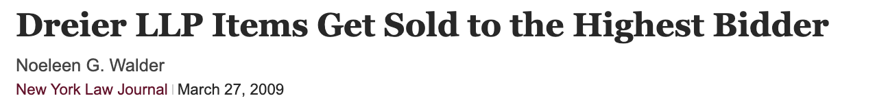 When Dreier LLP filed for Chapter 11 protection in bankruptcy court in Manhattan, claiming to have liabilities tallying between $10 million and $50 million, they knew they would have to part with their collection of 20th Century Master prints. Credits waiting satisfaction include, landlord of 499 Park Ave. ($908k); West Publishing ($441k); American Express ($323k); PR firm Van Prooyen Greenfield ($274k); ABM Janitorial Services ($89k); and AT&T ($81k).