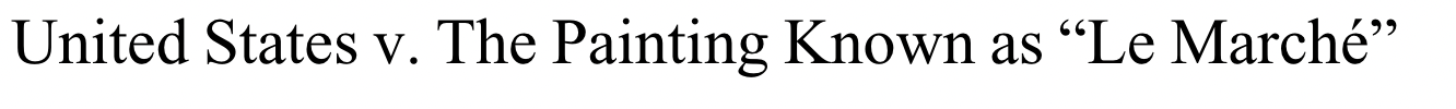 In 1981, “Le Marché”, a work by Camille Pissarro, disappeared from the Museé Faure in Aix-les-Bains. Four years later, Sharyl Davis bought the work from J. Adelman Antiques and Art Gallery, a Texas gallery, which had taken it on consignment from Emil Guelton. In 2003, Ms. Davis put the work in Sotheby’s catalog. The Art Loss Register had it noted as missing, and underwent routine art theft procedures, notifying the parties involved. The French authorities were able to identify Guelton as the thief in question, and demanded that the US return the work to France. The United States brought a forfeiture action against Ms. Davis to recover the artwork.
