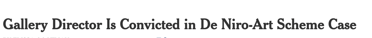 The larceny charges, for which Morse was ultimately acquitted, related to the mishandling of art belonging to Robert DeNiro’s father, now deceased. In mid-March, DeNiro took the stand to testify that proceeds from the sale of his father’s paintings were improperly deposited in Morse’s personal bank account. According to Bloomberg, most jurors decided this practice was lawful, because Morse would have been compensated for the sales eventually. However, it was a close call for the jury on this count, with one juror even stepping forward after trial to apologize to DeNiro …