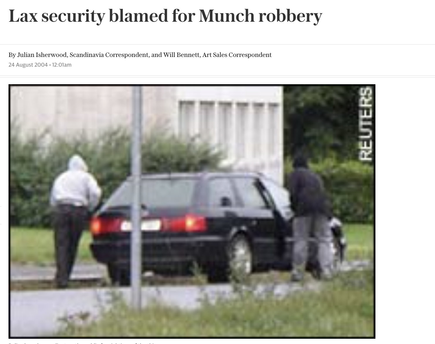 Lax security usually malfunctions when something goes missing. This flaw was blamed for theft of hundreds of works from the Hermitage museum in Russia in 2006, of Munch paintings in Norway in 2004, and of photographs by Drtikol in Czech Republic in 2011.