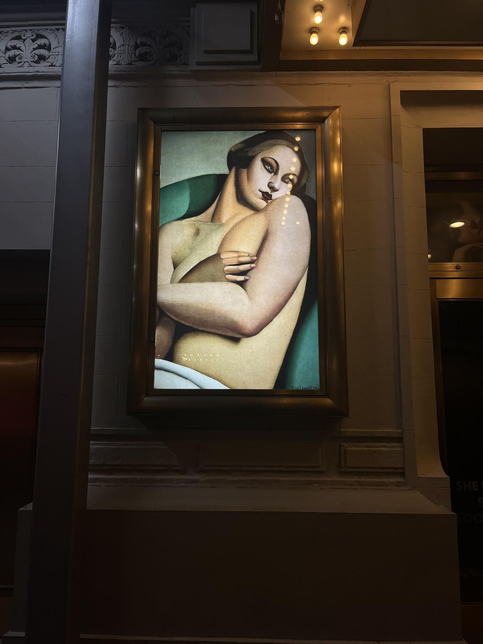 Following critically acclaimed runs at the Williamstown Theatre Festival and the La Jolla Playhouse, Lempicka is coming to Broadway in April 2024 at the Longacre Theatre.[19] Tony Award-winner Rachel Chavkin is directing this new musical, while Carson Kreitzer and Matt Gould join as writers of the book, lyrics, and original concept.[20] The musical will follow the life of Tamara de Lempicka by exploring “the contradictions of a world in crisis, a woman ahead of her era, and an artist whose time has finally come.”[21] Lempicka will center around Tamara’s affair with Rafaela. In preparation for the show, the Longacre Theatre has created an outdoor exhibition featuring Tamara de Lempicka’s most famous pieces, which include Nu Adossé (1925), Portrait of Romana de la Salle (1928), Self Portrait (Tamara in a Green Bugatti) (1929), The Green Turban (1930), Portrait of Ira P. (1930), Portrait of Marjorie Ferry (1932), and Adam and Eve (1932).[22]