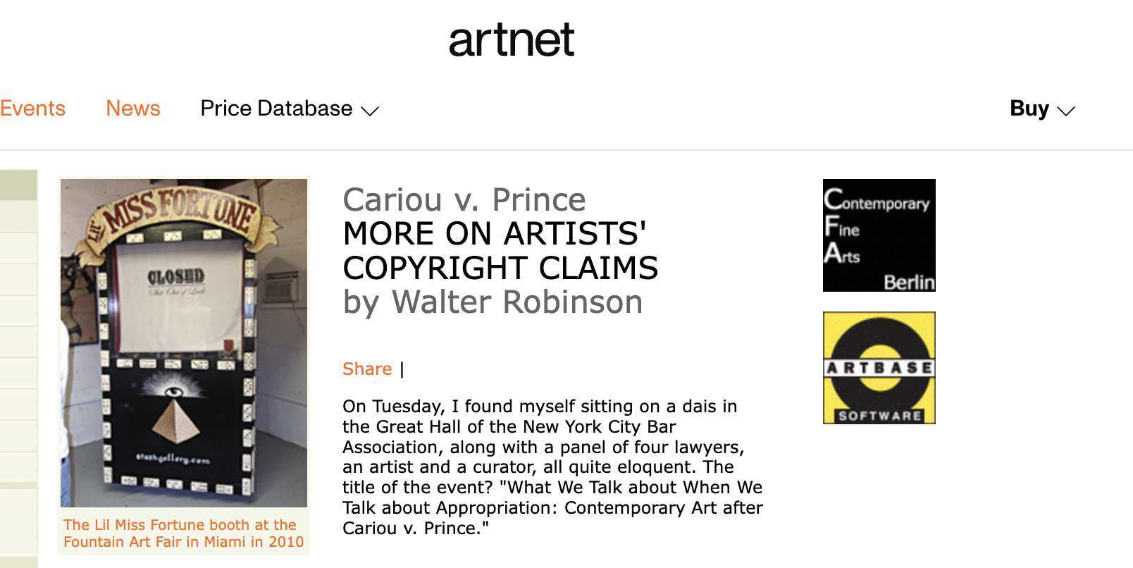 Some of the contributor’s to the brief, including Virginia Rutledge, an art historian and attorney based in New York, and Anthony T. Falzone, Executive Director of the Fair Use Project and counsel for the Foundation, participated in a lively discussion at the New York City Bar Association on December 13, 2011, on the panel “What We Talk About When We Talk about Appropriation: Contemporary Art After Cariou v. Prince.” Elsewhere, Falzone has been quoted as saying “The fair use doctrine is the most important tool courts have to ensure that copyright does not choke the creativity it is supposed to foster. Artists should not have to hire a lawyer to make art, and we’re suggesting an approach that provides clearer protection for the free expression interests of artists and the public.”