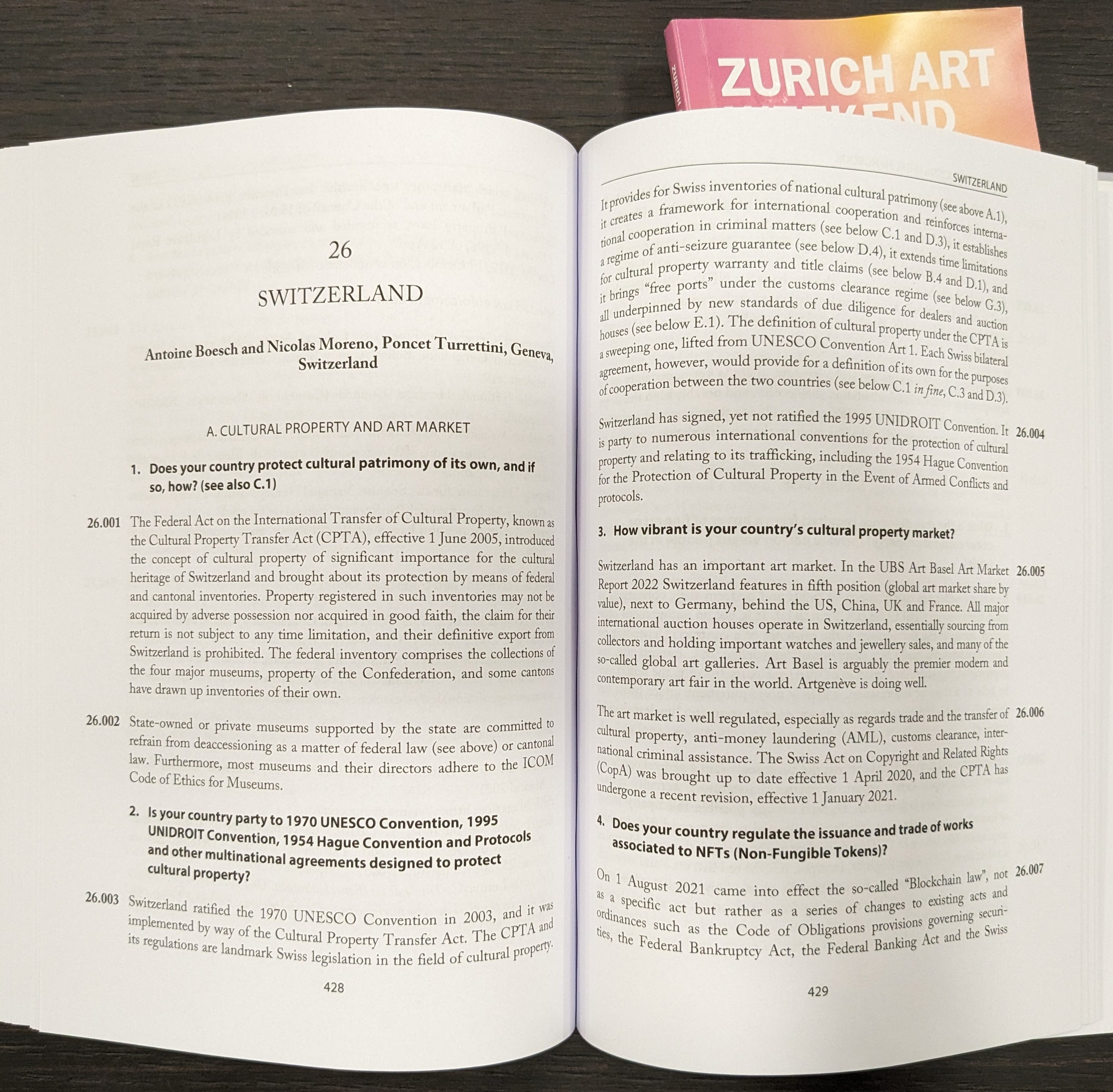 The Art Collecting Legal Handbook is an informative manual on auction market sales, artistic trends like NFTs, and how different countries are currently considering cultural property. Boesch and Steppi is compiled in a manner that is easy for curious beginners who want to learn more about how NFTs affect cultural property law. While NFTs are a new area of art that is becoming more globally established, proper legislation for NFTs has yet to be enacted. The Art Collecting Legal Handbook illuminates how countries consider cultural property and seller, artist, and collector rights in a fluctuating market.